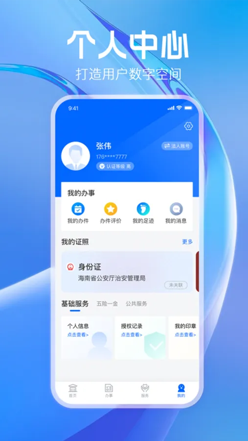 6.【实名认证】身份信息填写+人脸识别校验,办事更可靠。