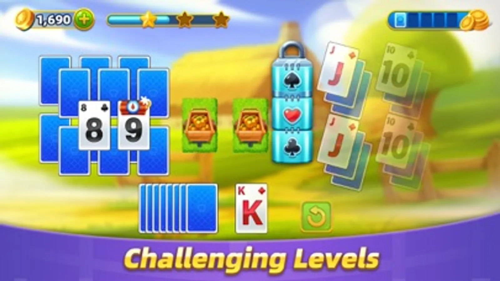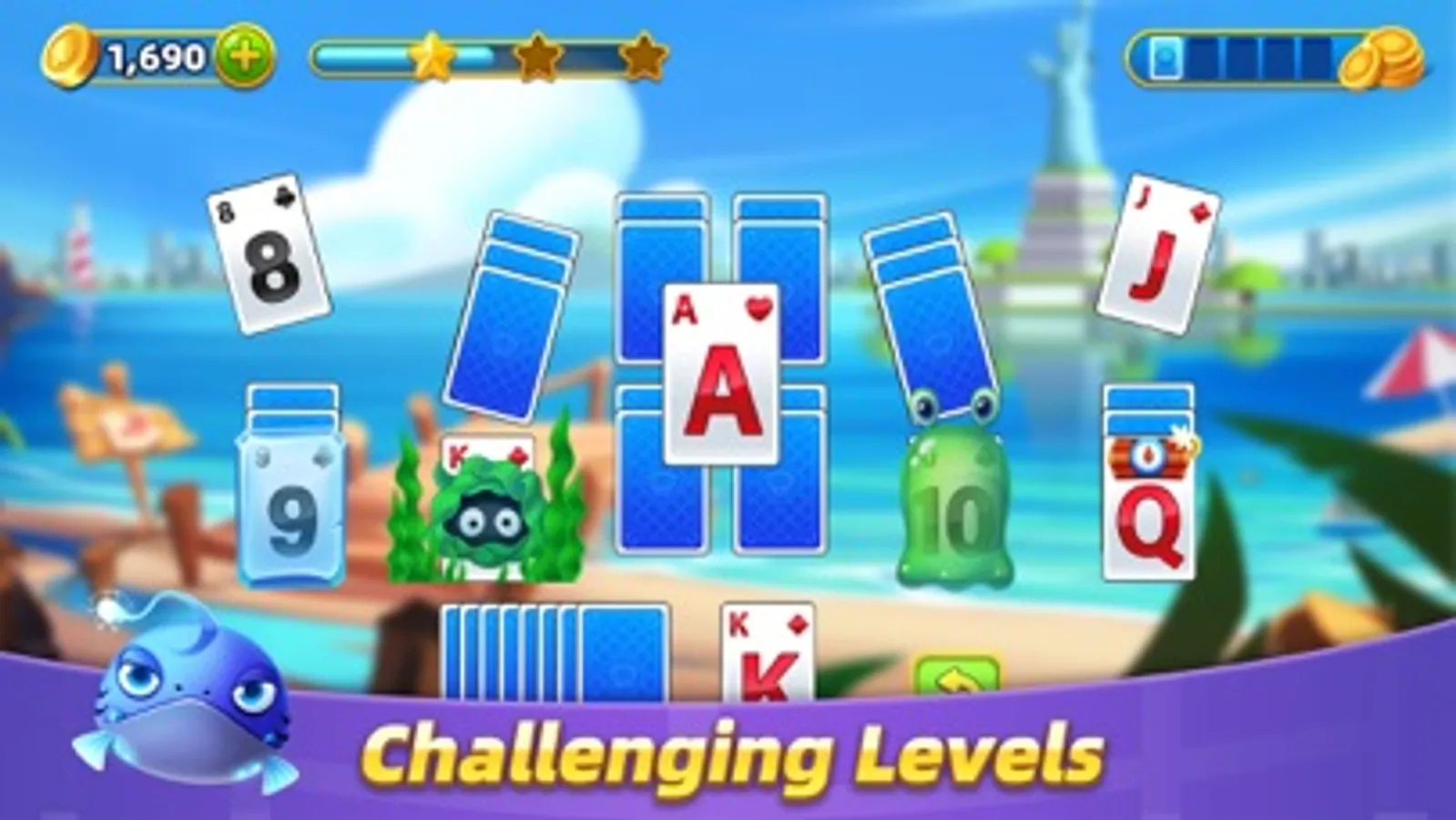 -Find the final treasure from the ocean by winning Tripeaks games!