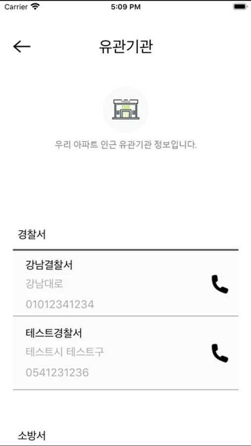 긴급한 상황이면 119 번호가 뭐지 할 정도로 정신없을 상황이지만 시큐원 콜미의 유관기관 정보 검색으로 내가 사는 주변에 경찰, 소방서, 시청 등의 연락처를 바로 검색 및 통화하실 수 있습니다.