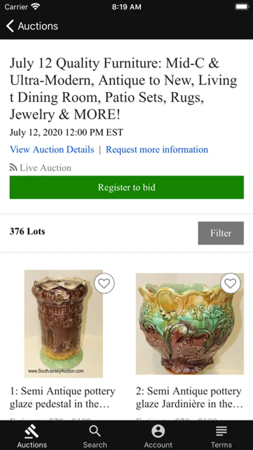 The new South Jersey Auction app lets you view our auction calendar and bid live in our auctions from your mobile device.