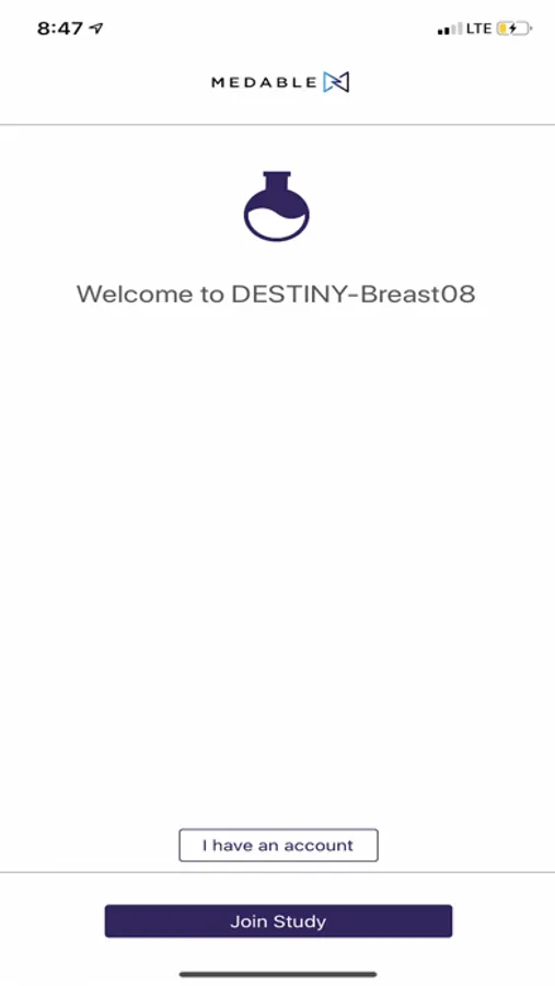 You are invited to participate in the DESTINY-Breast08 (AZD967JC00002) study. This application will allow you to take pulse oximeter readings and complete questionnaires for the study.
