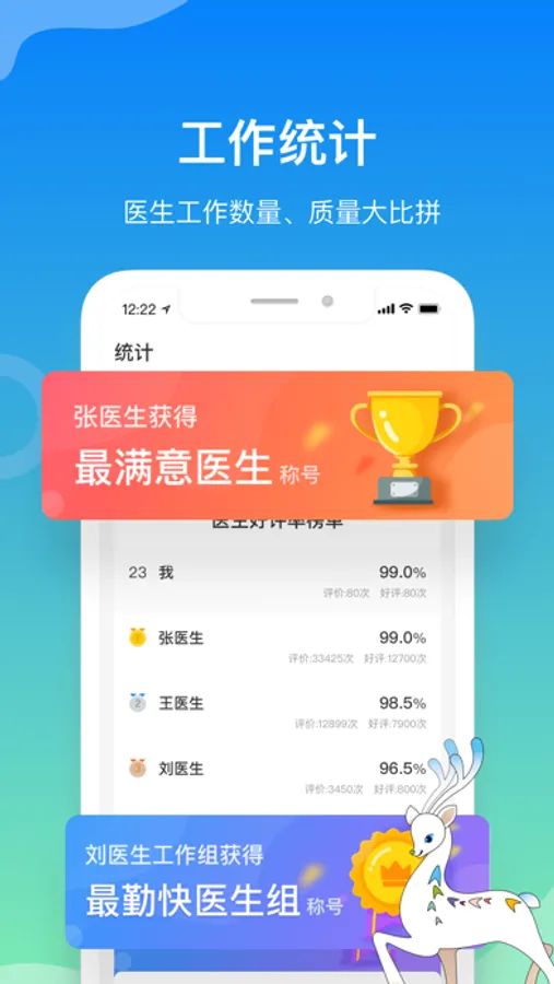 8 服务统计榜单:医生、工作组参与服务好评大比拼,争夺“最满意医生”荣誉称号。