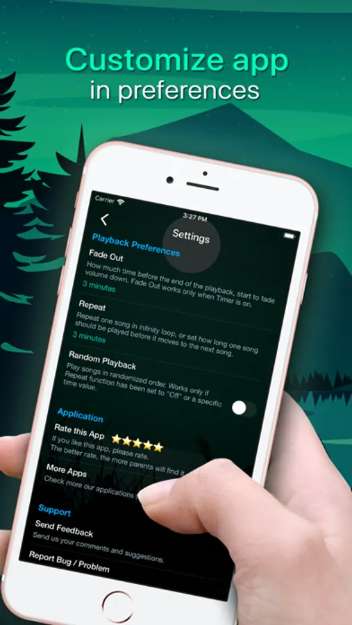 Calm Music to sleep included in the application will make you drift away in the moment.