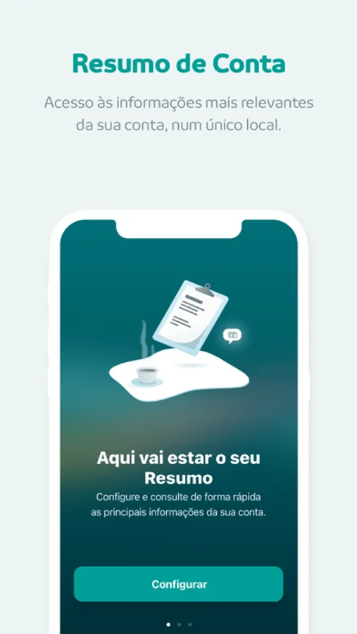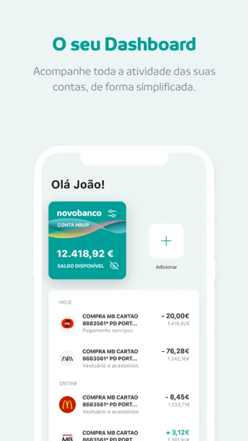 Um ecrã inicial com o resumo das principais opções; saldos e movimentos das suas Contas; a sua Posição Integrada; os cartões de crédito associados e acesso rápido à opção de carregamentos para que acompanhe a atividade das suas Contas de forma simplificada.