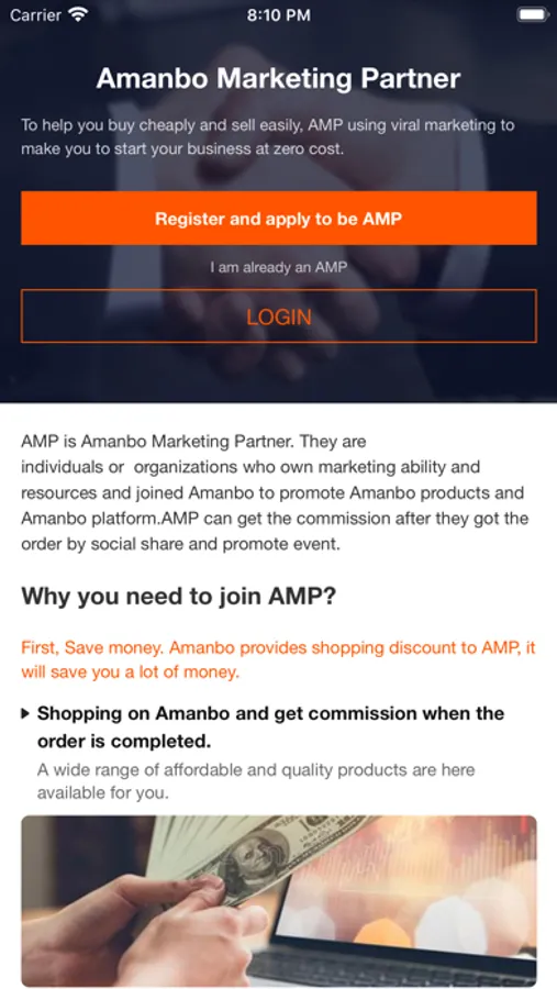 AMP APP is an online shopping application also known as Amanbo Marketing Partner(AMP)