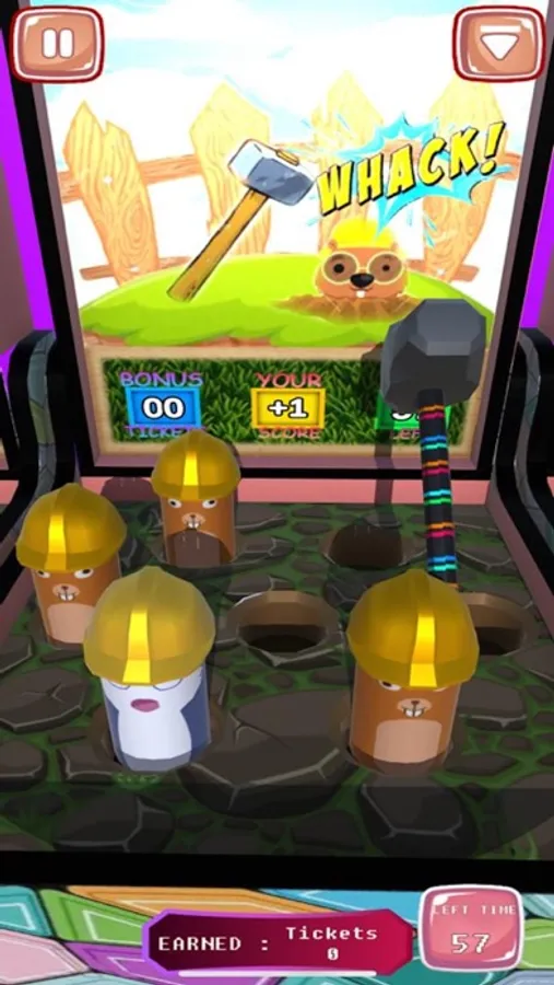 Tap-A-Mole, a classic arcade game where you try to get rid of as many moles as possible. Don't hit the skunks though!