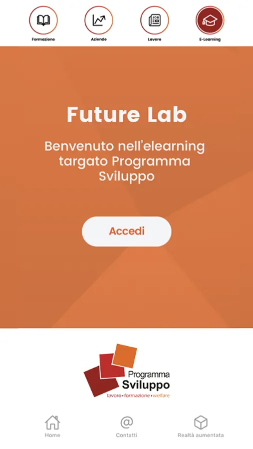 Grazie all'app potrai inoltre avere accesso diretto a Future Lab, la piattaforma di e-learning di Programma Sviluppo, e fruire dei contenuti speciali in realtà aumentata su innovazione, competitività e territorio.