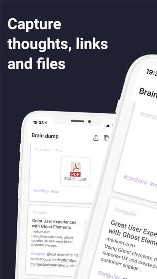 Using Chunker, you save everything the way your brain works: by making connections! Instead of having to figure our *where* to save a certain thing, just throw it into Chunker, write down the words ("tags") that make sense for whatever you are saving and let the app organize your network of thoughts, ideas, files, links and knowledge.