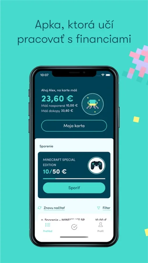 Apku, čo fakt využiješ. Spravuj si vlastné úspory, odkladaj si na výlet a nemiň celé vreckové v parádnom prostredí apky so skutočnou kartou a štýlovým náramkom na bezkontaktné platby.