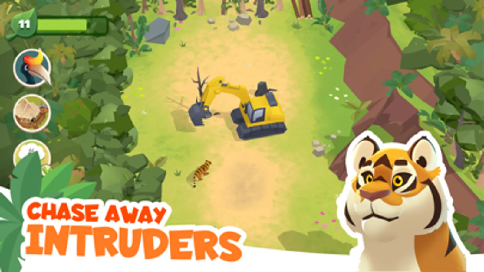 Orang and his friends need your help to replant the jungle! The more trees that you plant, the more animals will return to the jungle! Collect them all! Discover a restaurant, build a raft and a watchtower. Chase away excavators and illegal loggers with chainsaws. Meet Stripes the tiger, and Splash the elephant!