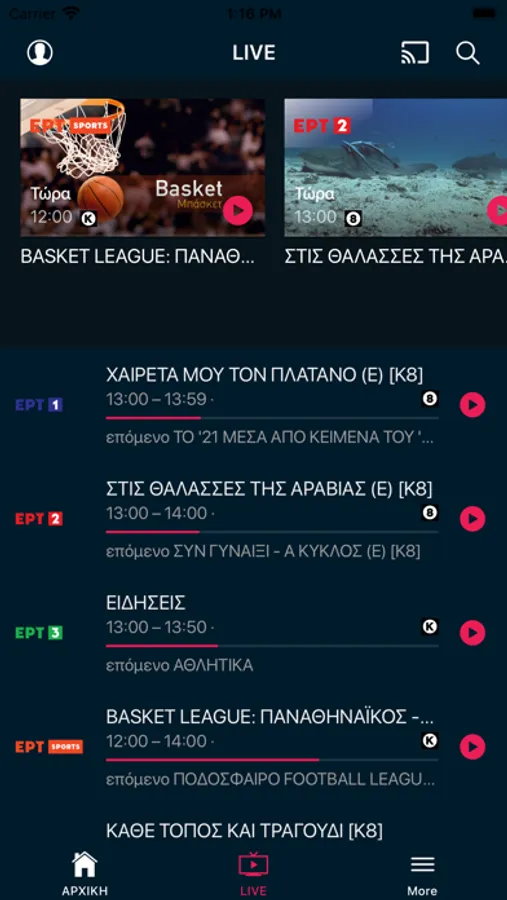 Εδώ θα βρεις το πιο πλούσιο περιεχόμενο: ταινίες, σειρές, ντοκιμαντέρ, παιδικά, μοναδικά αφιερώματα αρχείου, αλλά και 24ωρη ενημέρωση.