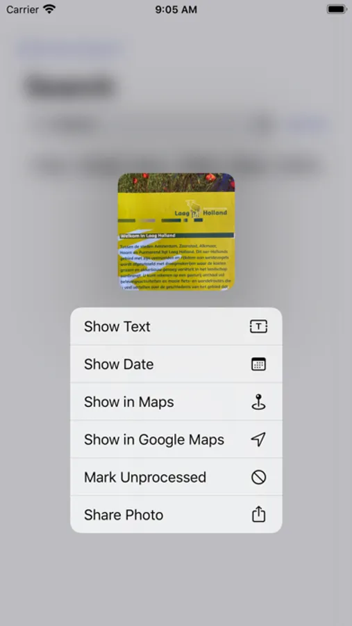 Photos Search includes a Share Extension. With this extension you can extract text from any image or photo in any app through the extension feature of iOS.