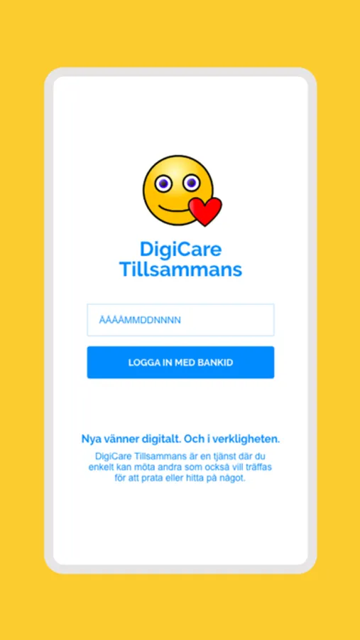 Du och alla andra loggar in med BankID så att du säkert vet att andra du träffar på är den de utger sig för att vara. Ingen registrering behövs. Vi träffas säkert och enkelt.