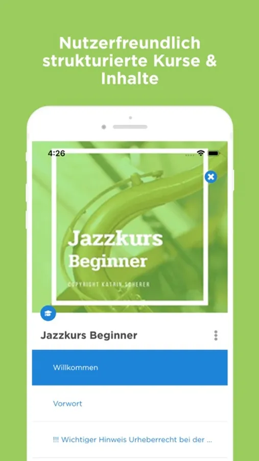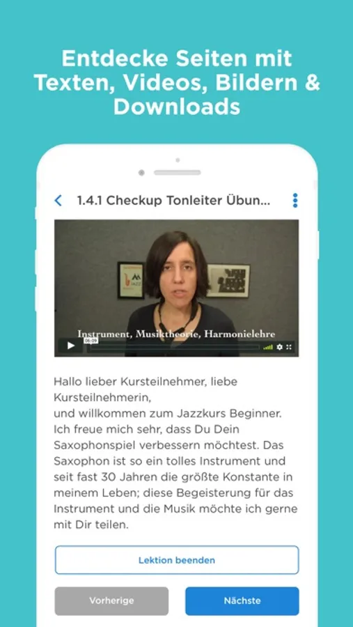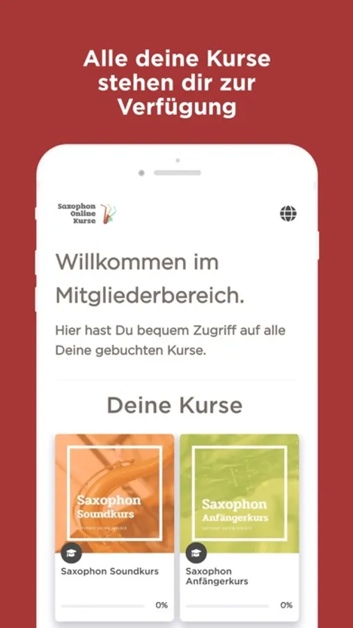 Mit dieser App lernst Du Saxophonspielen und hast Zugriff auf Deine gekauften Saxophon Onlinekurse