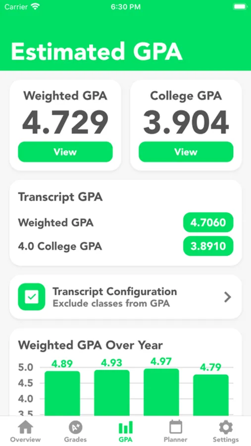 You no longer have to wait for the end of the semester to know your GPA. GradeWay calculates your weighted and unweighted GPA using all of your averages, your transcript, and all your credits. View GPA breakdowns, edit scales, and exclude courses to improve accuracy. Use the built-in what if calculator to predict changes to your GPA.