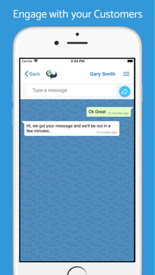 You can create "pre-canned" responses such as "you may come in now" or "we're coming out to you now", available with a simple button press. For more bespoke situations you can have a text chat conversation with the customer directly in the app, and these conversations are completely deleted when either of you choose end the interaction.