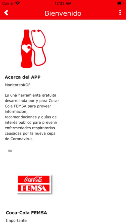 Monitor KOF es una aplicación para encuestas en personal de Coca-Cola FEMSA en las operaciones de México, Argentina, Brasil, Colombia, Costa Rica, Nicaragua, Panamá, Uruguay y Venezuela, así como informar acciones y comunicados de interés a la comunidad