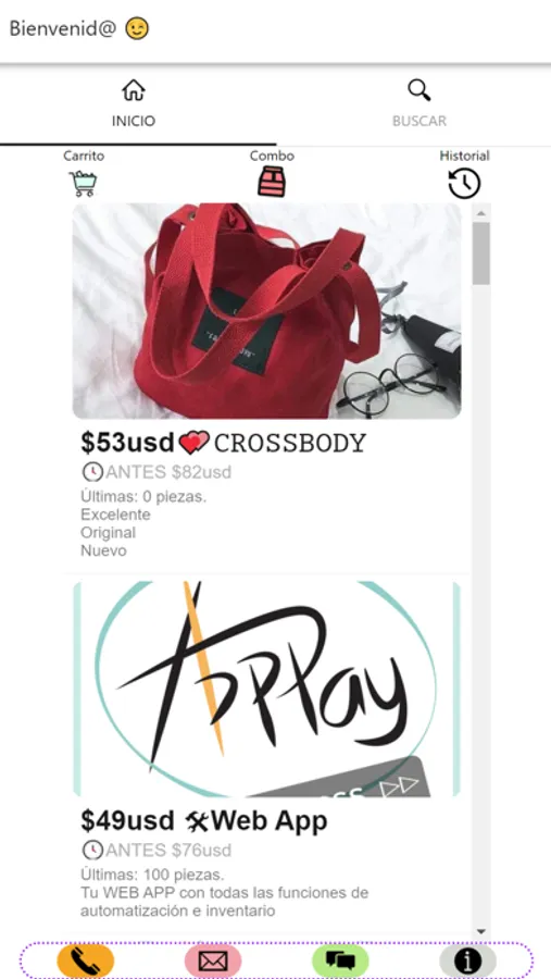 Ve nuestros productos, sus tallas, colores y disponibilidad. Recibe notificaciones de nuevos productos y diviértete navegando.