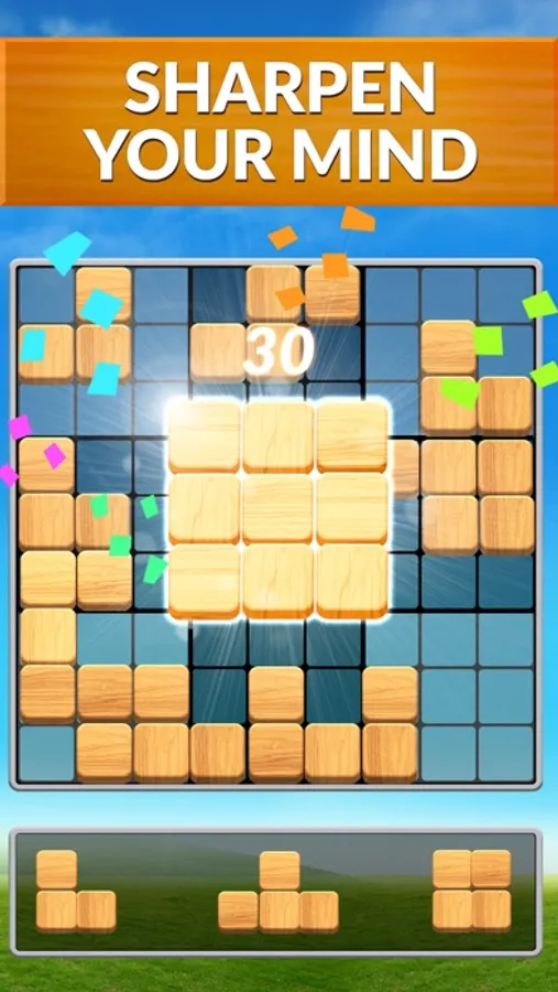 • Blast off wooden blocks by filling up lines or matching 3x3 squares
