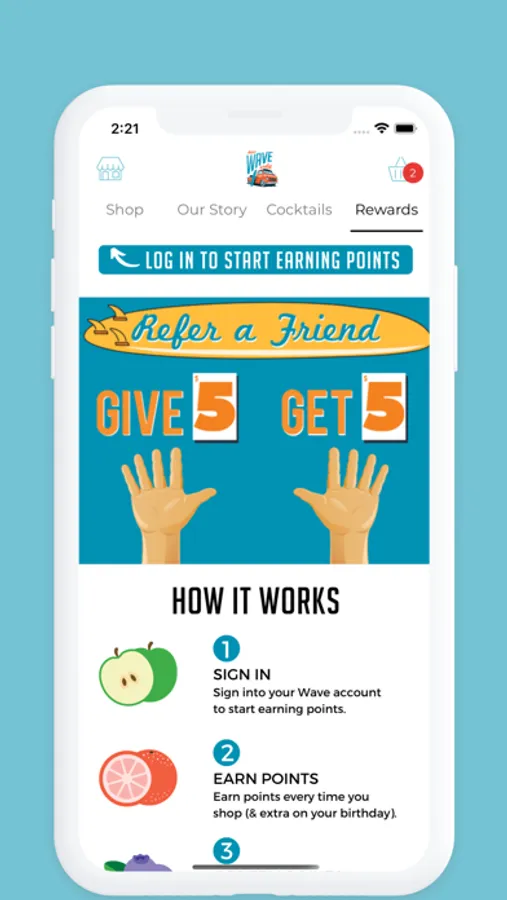 Welcome to the Wave Soda App! Order drinks and merchandise to earn loyalty points and rewards. Like and share your favorite Wave products.