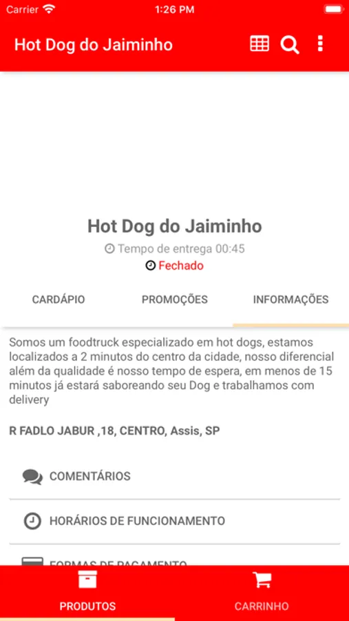 Somos um foodtruck especializado em hot dogs , estamos localizados a 2 minutos do centro da cidade nosso diferencial além da qualidade e nosso tempo de espera em menos de 15 minutos já estará saboreando seu Dog e trabalhamos com delivery