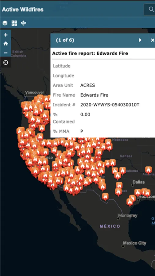 Active Wildfire Tracker Map is an interactive mapping application that tracks the current active wildfires in the US. The data is updated hourly and offer GPS capabilities.