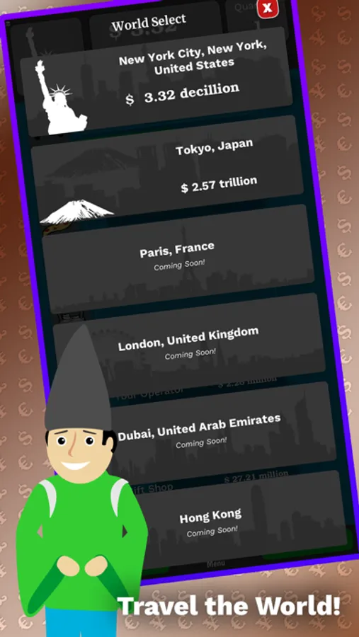 Visit industrial hubs all around the world and start businesses, hire managers, buy upgrades, and work your way to becoming the most powerful industrialist in the world!