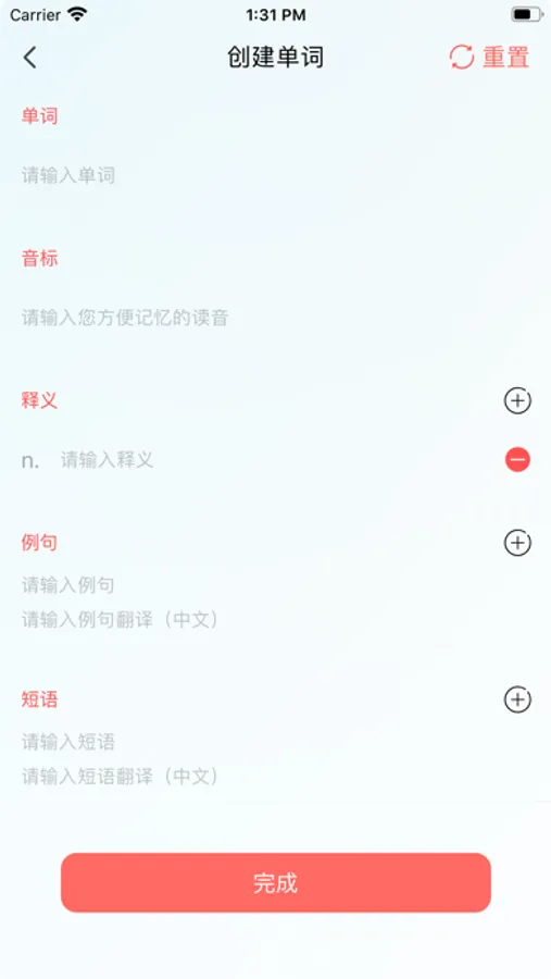 可以定制单词,添加有关该单词的发音,词义,例句,短语。