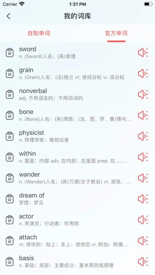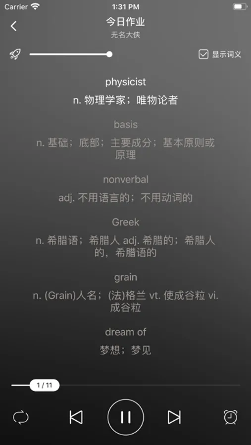 词书播放器可以播放每一个单词,循环播放,增强单词记忆。