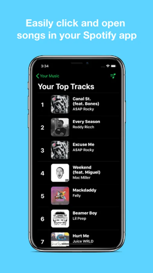 Also, tap on any artists or song and you'll be taken from your app to our favorite music streaming platform, Spotify.