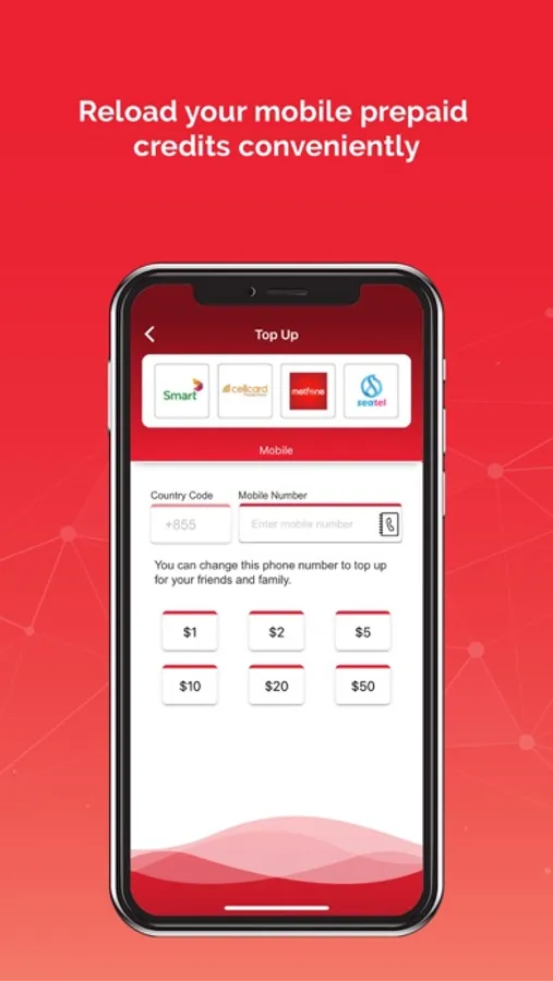 Mobile Top up: Reload your mobile prepaid credits conveniently.