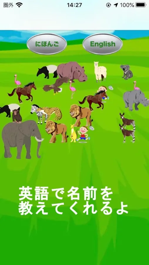 画面をタッチすると、いろいろな動物が音声とともに出現。