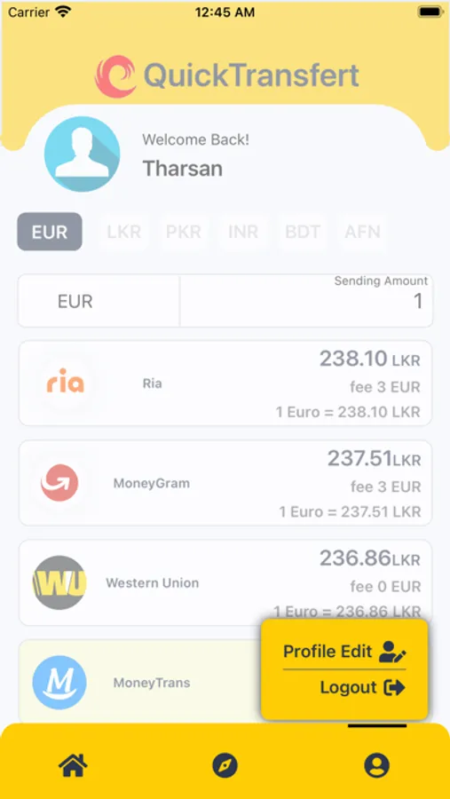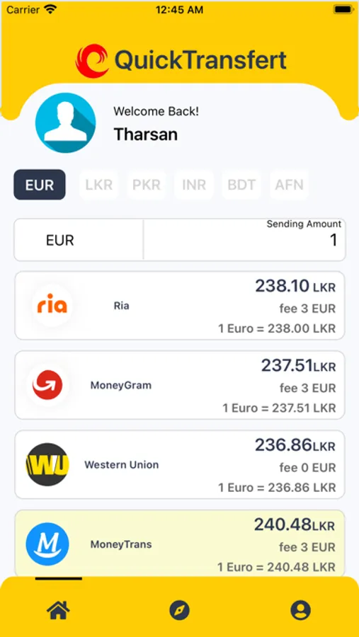 QuickTransfert helps to get the latest currency exchange rates provided for MoneyGram, RIA, WesternUnion.