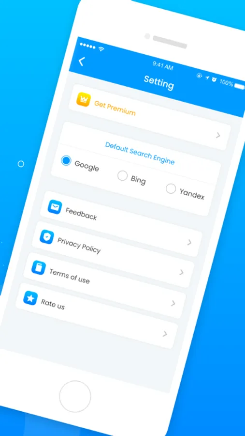 This app use Google in the in-app web browser. But the app is not endorsed by or affiliated with any of these search engines.
