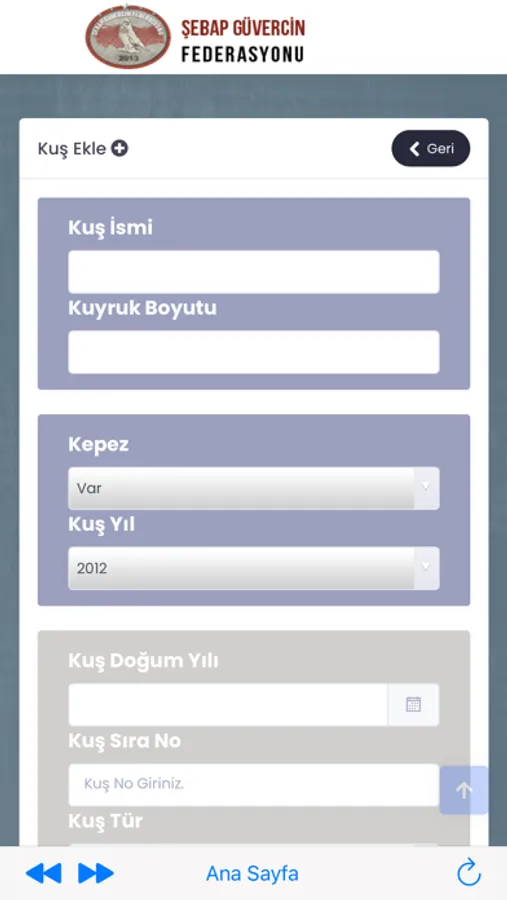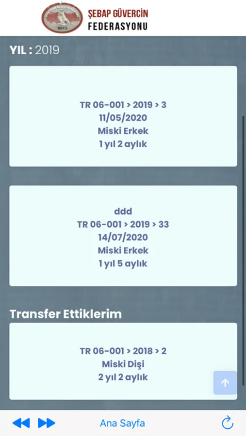 Şebap Güvercin Federasyonuna ait kuşların sisteme künyelerine göre kayıt edilmesi sonucu soy bilgilerine ulaşılabilmektedir.