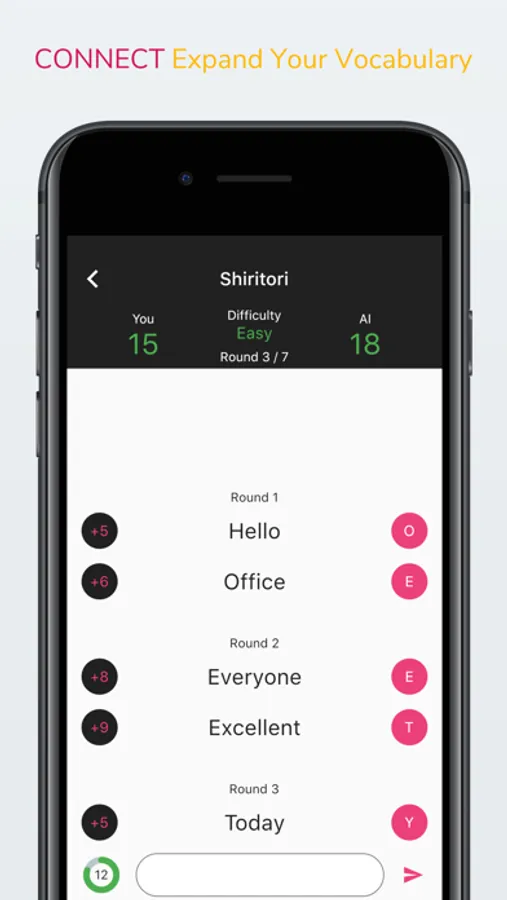 Train your vocabulary by connecting words together against an AI opponent. Here are the rules: