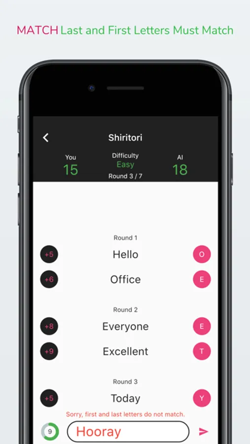 2. The word you choose must start with the letter of the last letter of the opponent's word