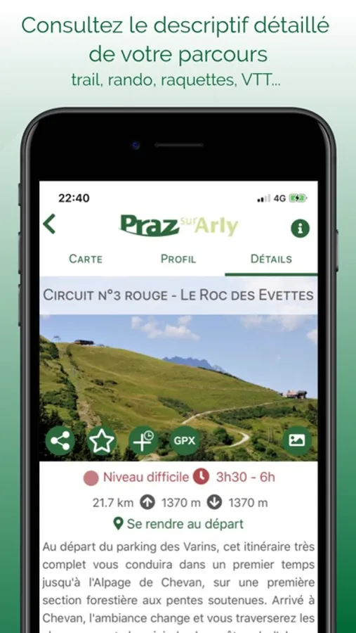With the Praz app on Arly-Destination Trail, discover the 7 trail tracks in summer but also hiking and mountain biking routes, circuits suitable for families. In winter, go on the snowshoe routes and the new ski touring route.