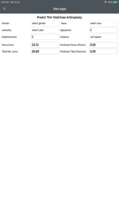 medical app to calculate the size needed for a Arthroplasty Knee replacement.