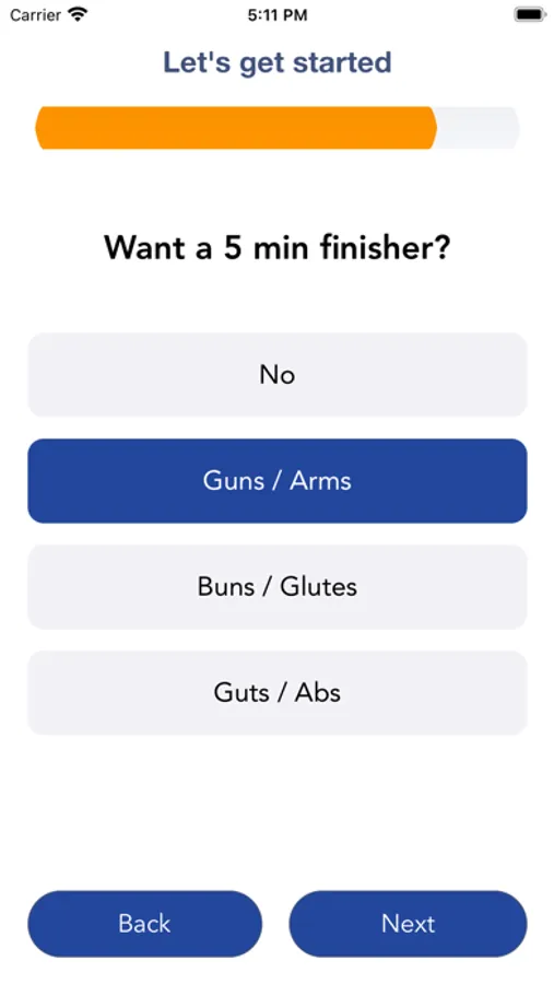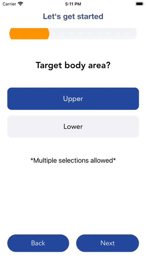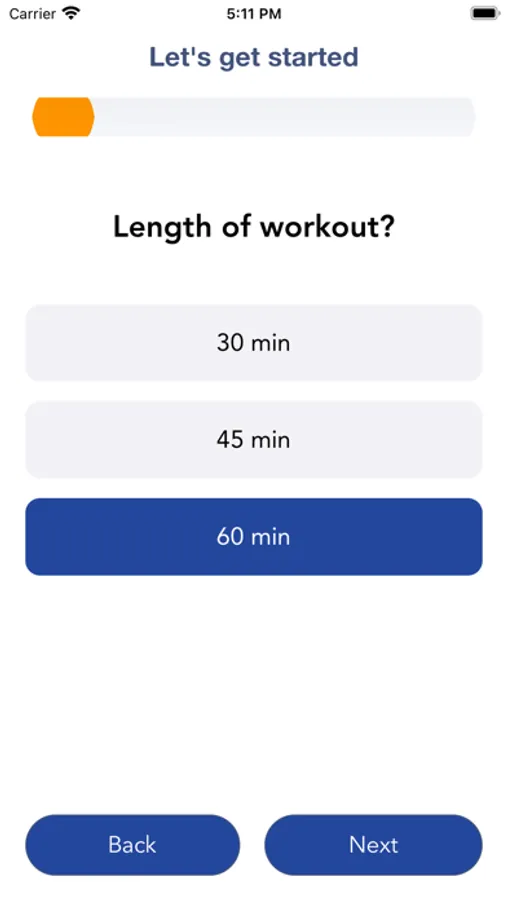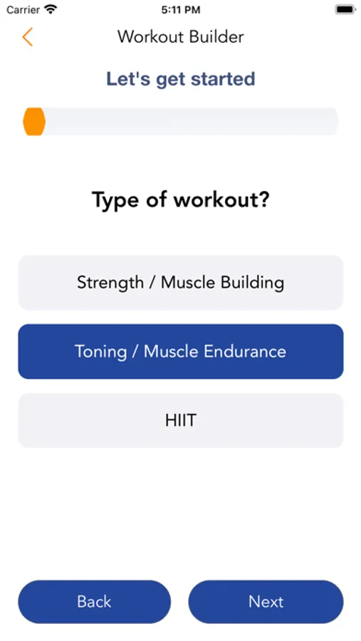 · Type of workout (Upper Body, Lower Body, Full Body, HIIT, Core Cardio)
