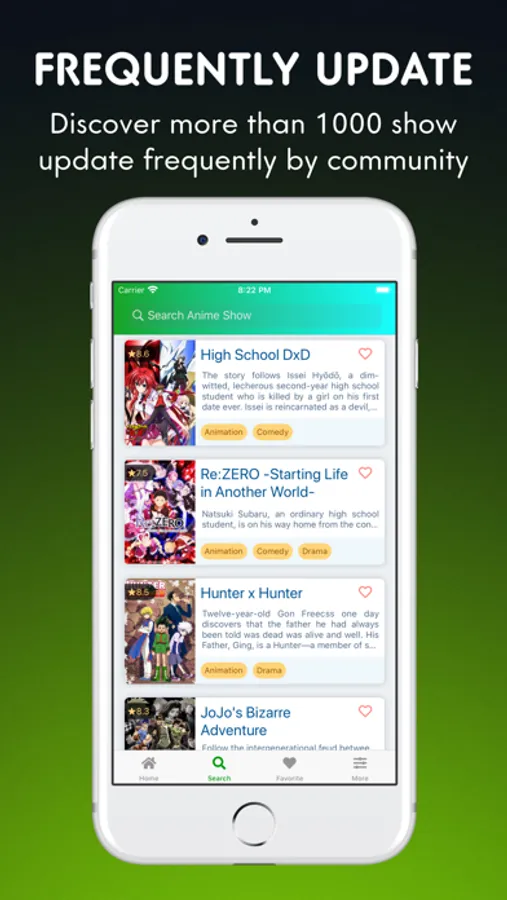 - Detail anime movies vs Seasons & Episodes with a short description, release date and rating