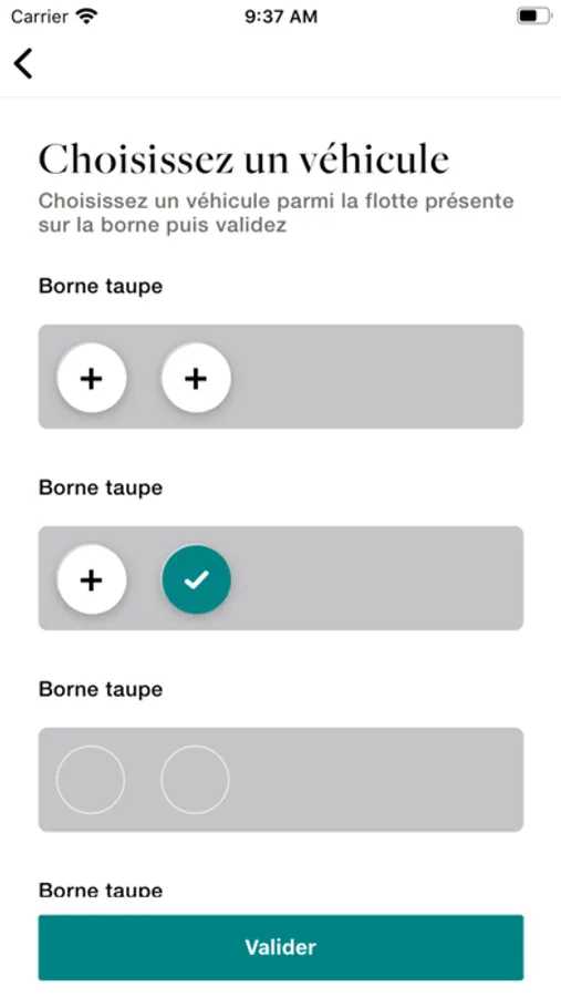 • Sélectionnez et déverrouillez votre véhicule de sa borne