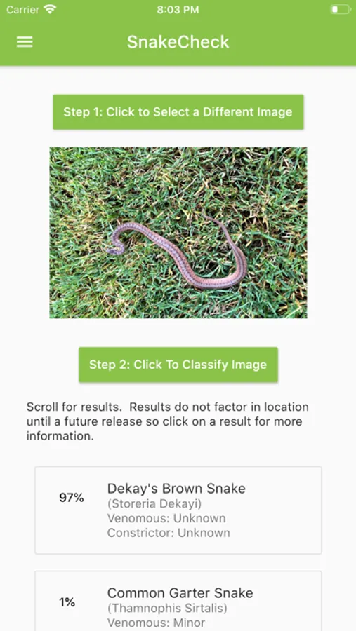 Use artificial intelligence to easily identify snake species. Just upload a picture and get suggestions on what snake species it matches.