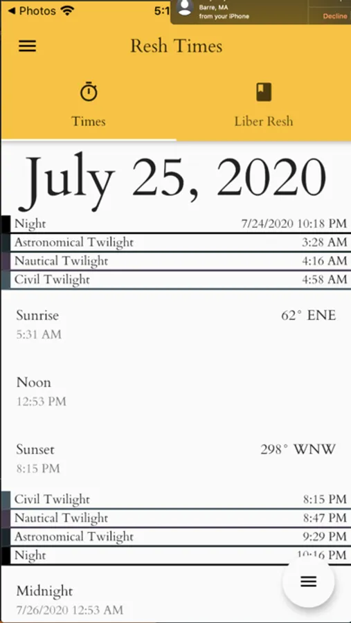 • See the calculated daily times for the stations of the Sun in order to time your practice of Liber Resh.