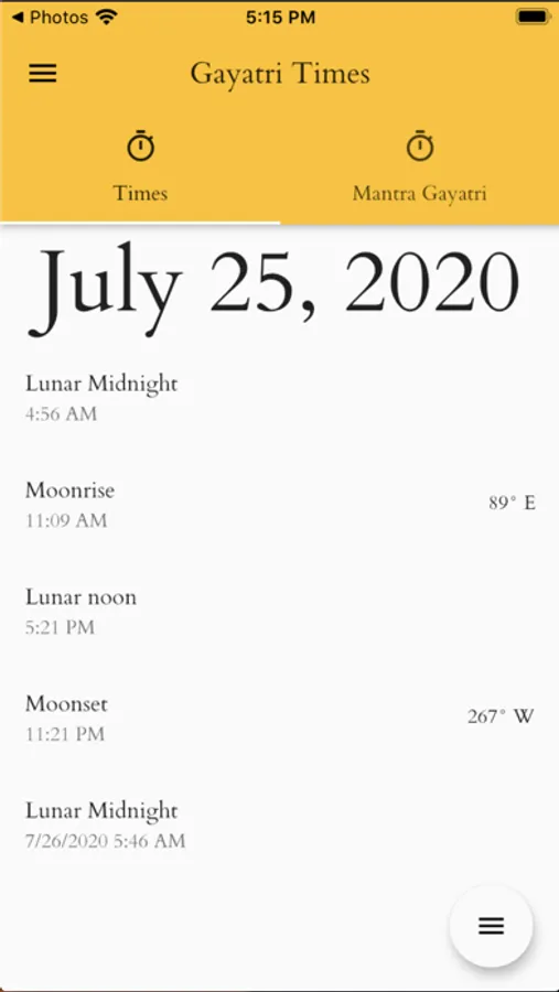 • See the calculated daily times for the stations of the Moon in order to time your practices like recitation of the Gayatri Mantra.