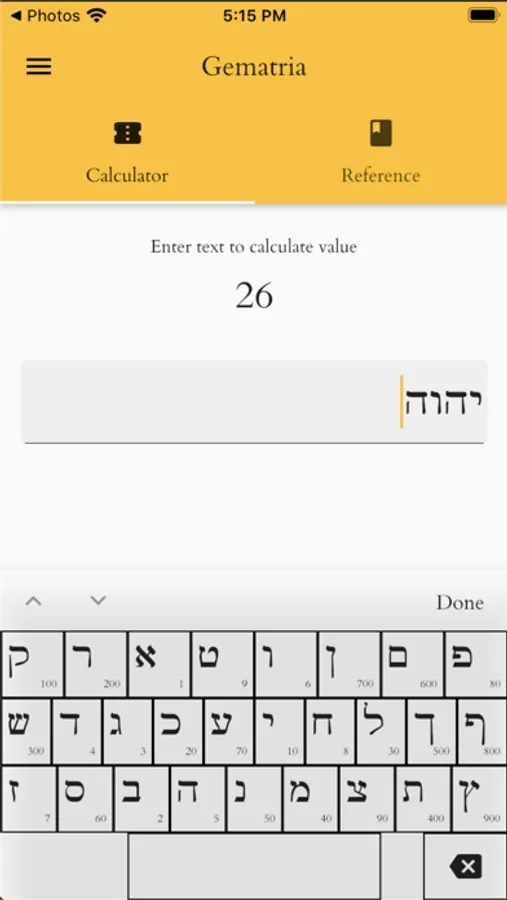 • A gematria calculator -- with a Hebrew keyboard that uses a traditional script font that you will be familiar with.