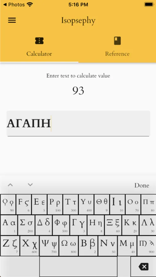 • An isopsephy calculator -- "Greek gematria".