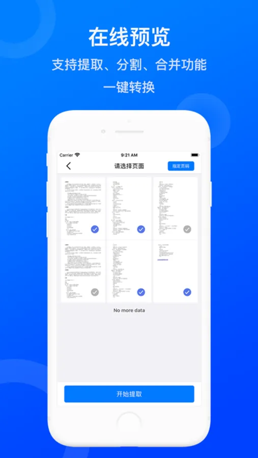PDF提取: 提取任意页或者指定页码来提取生成PDF文件;