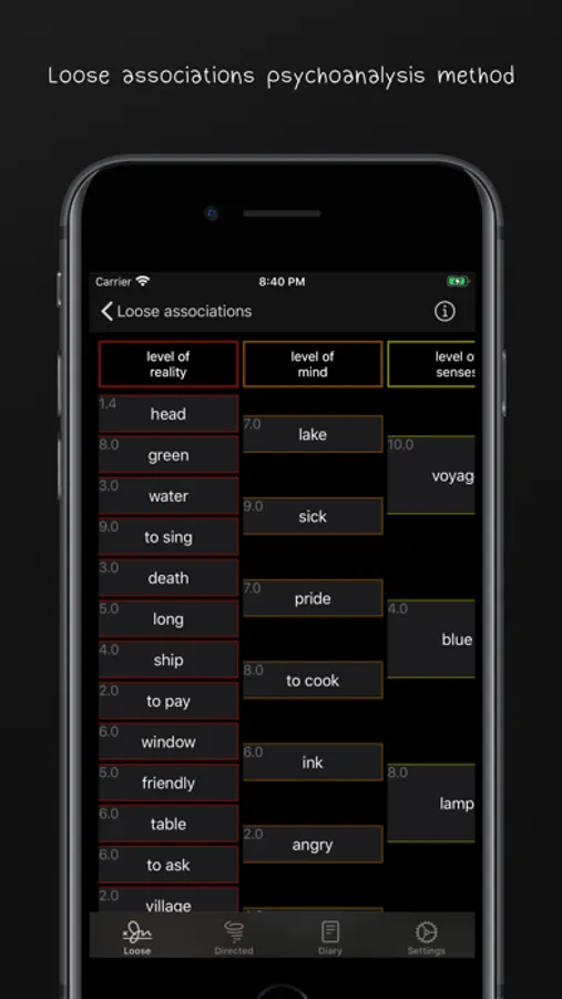 The method of loose associations is a psychoanalytic procedure for studying the unconscious, in which the individual freely talks about everything that comes to mind. It is one of the first projective methods actively used in psychoanalysis, psychology, sociology, psychiatry, social work, psycholinguistics.