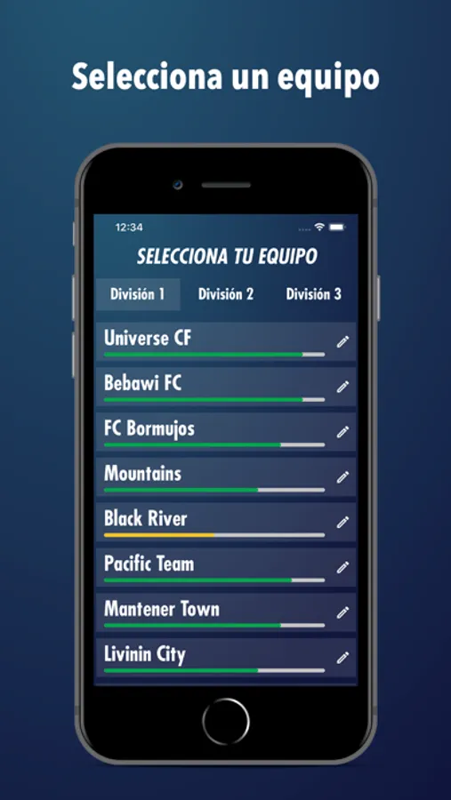 A different way to play. Select a team, select your desired division to start and...go! You don't like the teams names? Change them without problems.